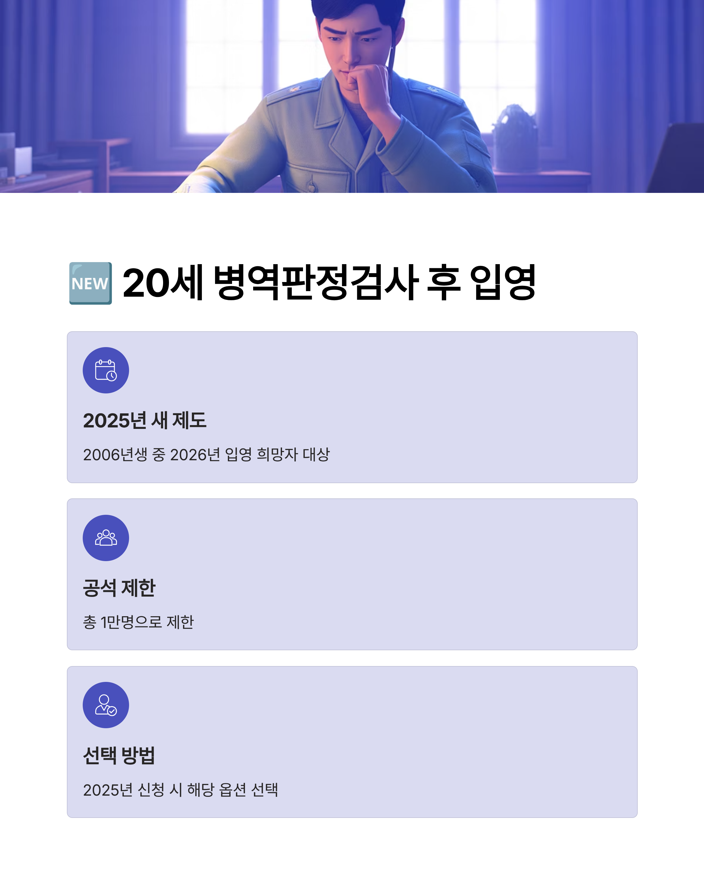 2025년부터 새로 시행되는 이 제도는 2006년생 중 2026년 입영을 희망하는 사람들을 위한 것입니다.