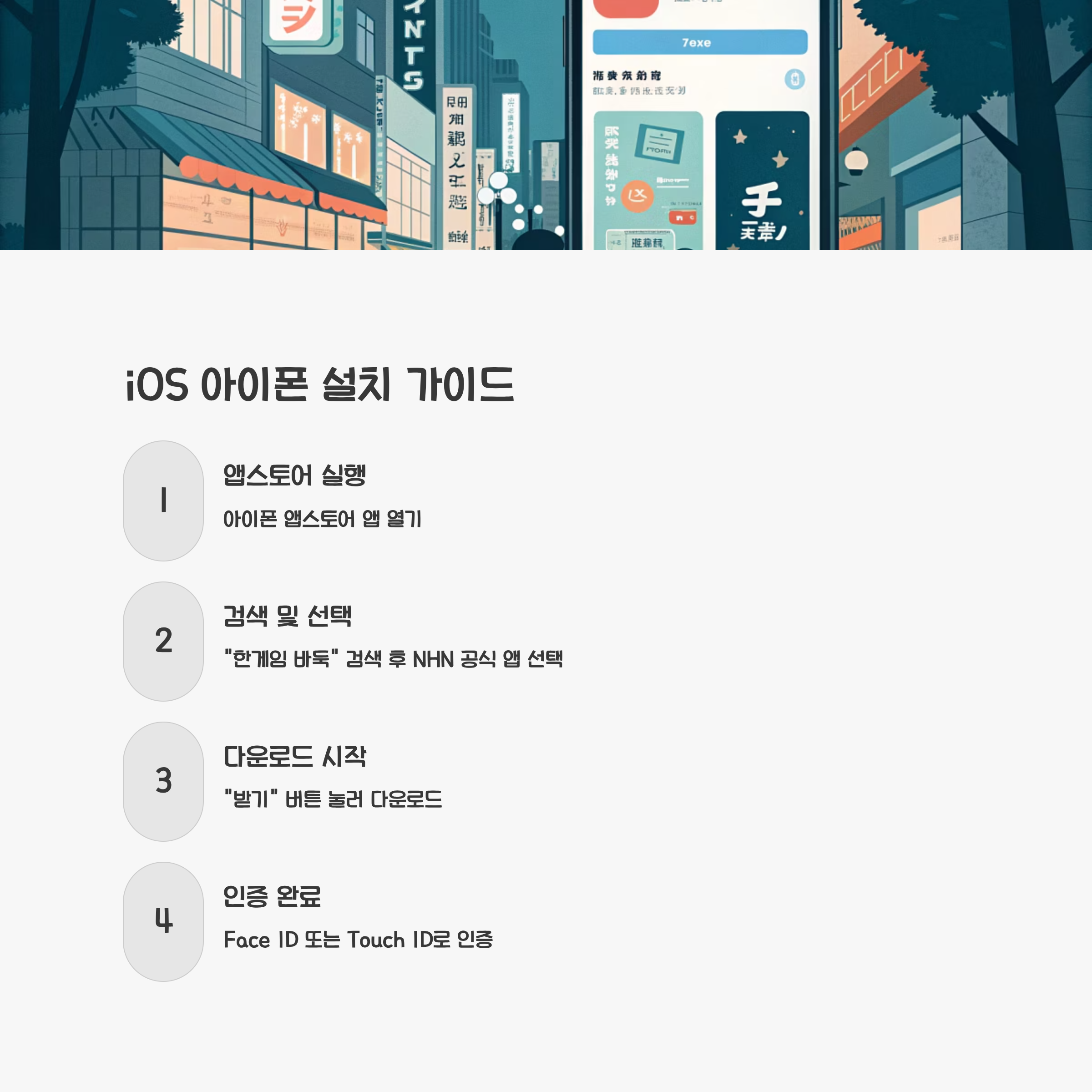 아이폰 사용자는 앱스토어를 실행한 후 검색창에 "한게임 바둑"을 입력합니다. 공식 앱인 NHN의 "한게임 바둑 (대국/베팅)"을 찾아 선택합니다. 앱 상세 화면의 "받기" 버튼을 눌러 다운로드를 시작합니다. 애플 기기는 보안상의 이유로 Face ID 또는 Touch ID를 통해 인증을 요구합니다. 얼굴 인식이나 지문 인증을 완료하면 설치가 자동으로 진행됩니다.