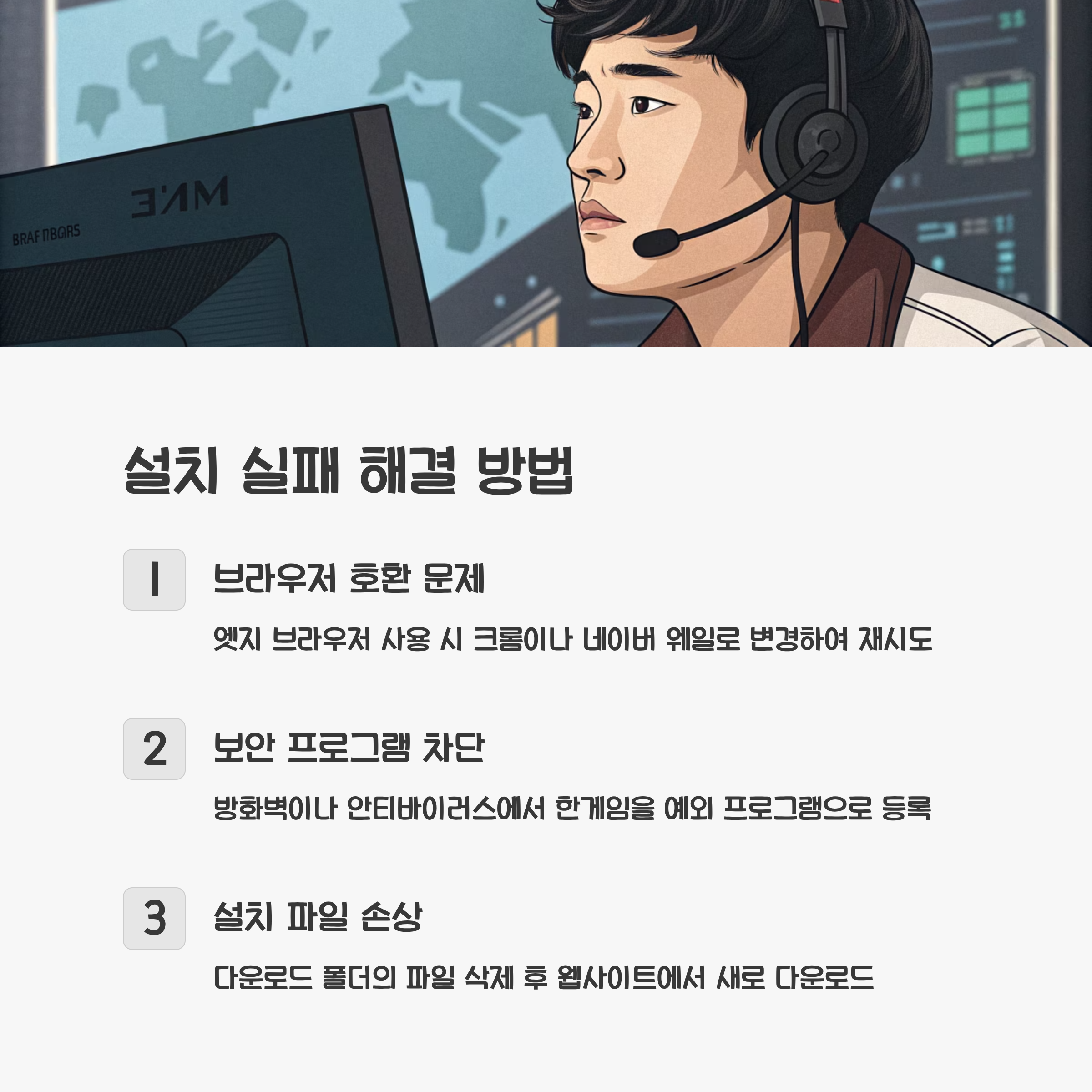 설치 중 오류가 발생하는 경우가 있습니다. 가장 흔한 원인은 브라우저 호환 문제입니다. 엣지 브라우저를 사용하고 있다면 크롬이나 네이버 웨일로 변경하여 다시 시도하는 것이 좋습니다. 또한 방화벽이나 안티바이러스 프로그램이 설치를 차단할 수 있으므로, 이러한 보안 프로그램에서 한게임을 예외 프로그램으로 등록하는 것이 필요할 수 있습니다.