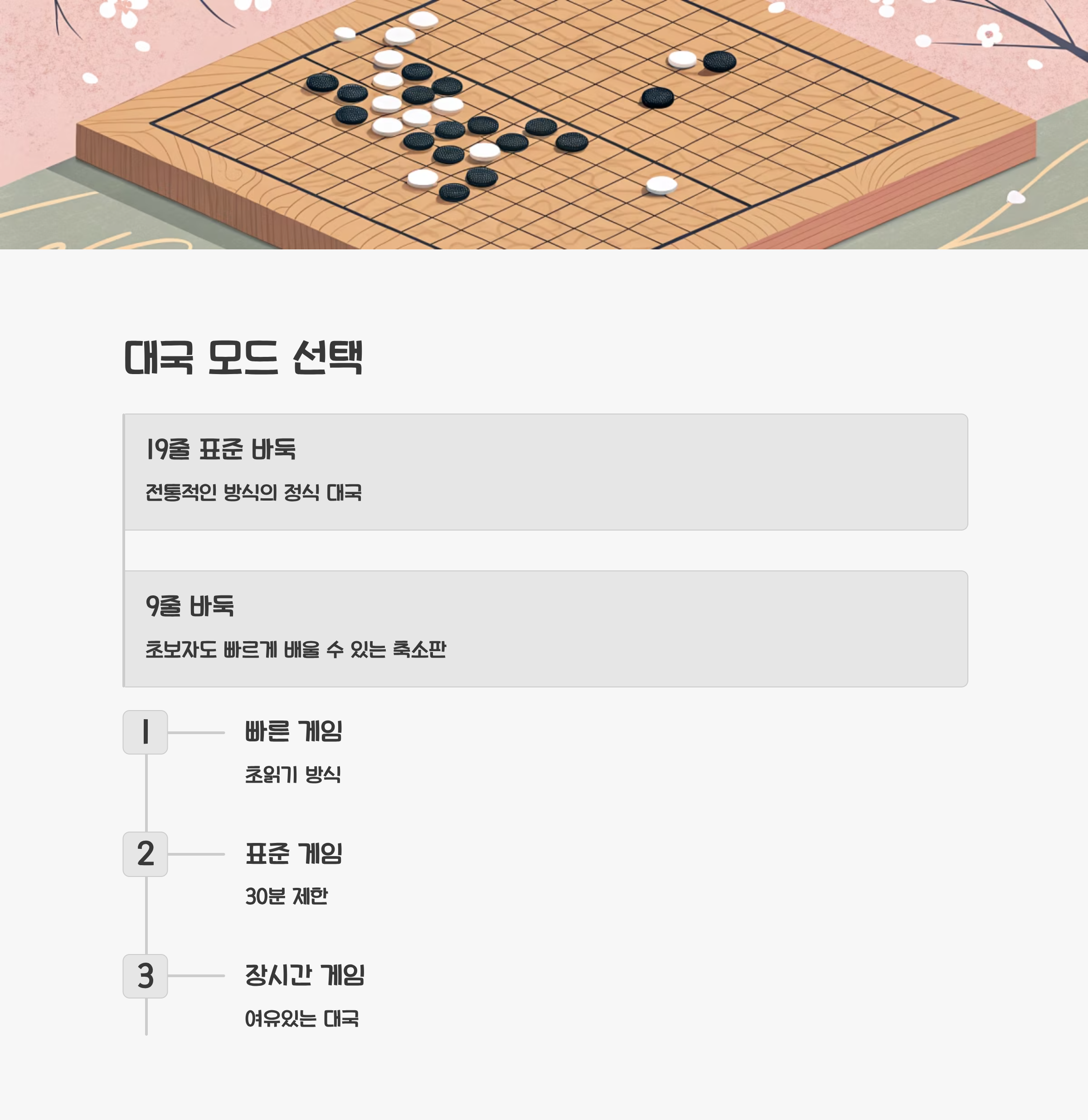 대국 모드 선택 및 규칙 이해하기