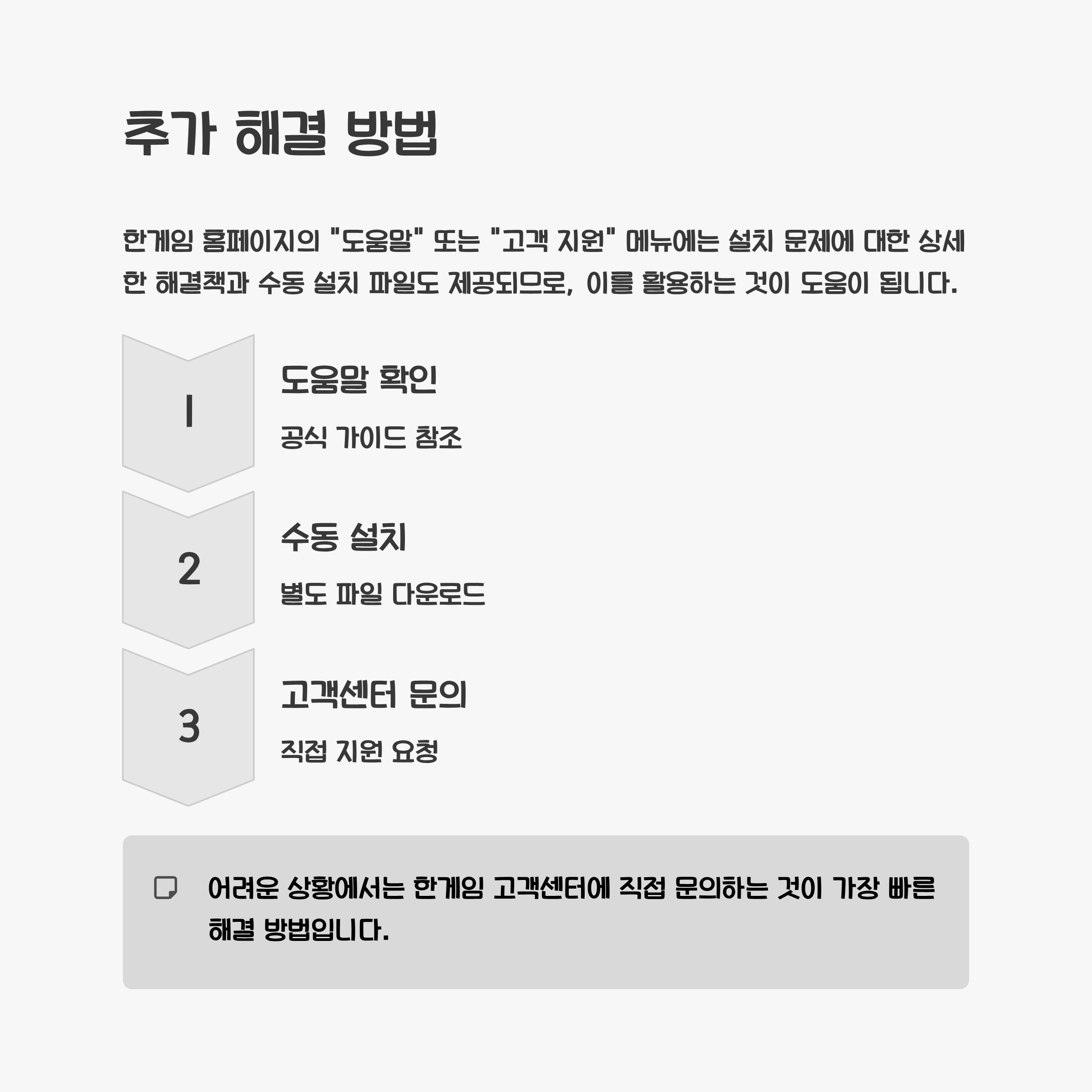 설치 파일이 손상되었을 가능성도 있습니다. 이 경우 다운로드 폴더의 설치 파일을 삭제하고 웹사이트에서 새로 다운로드하는 것이 좋습니다. 한게임 홈페이지의 "도움말" 또는 "고객 지원" 메뉴에는 설치 문제에 대한 상세한 해결책과 수동 설치 파일도 제공되므로, 이를 활용하는 것이 도움이 됩니다. 어려운 상황에서는 한게임 고객센터에 직접 문의하는 것이 가장 빠른 해결 방법입니다.