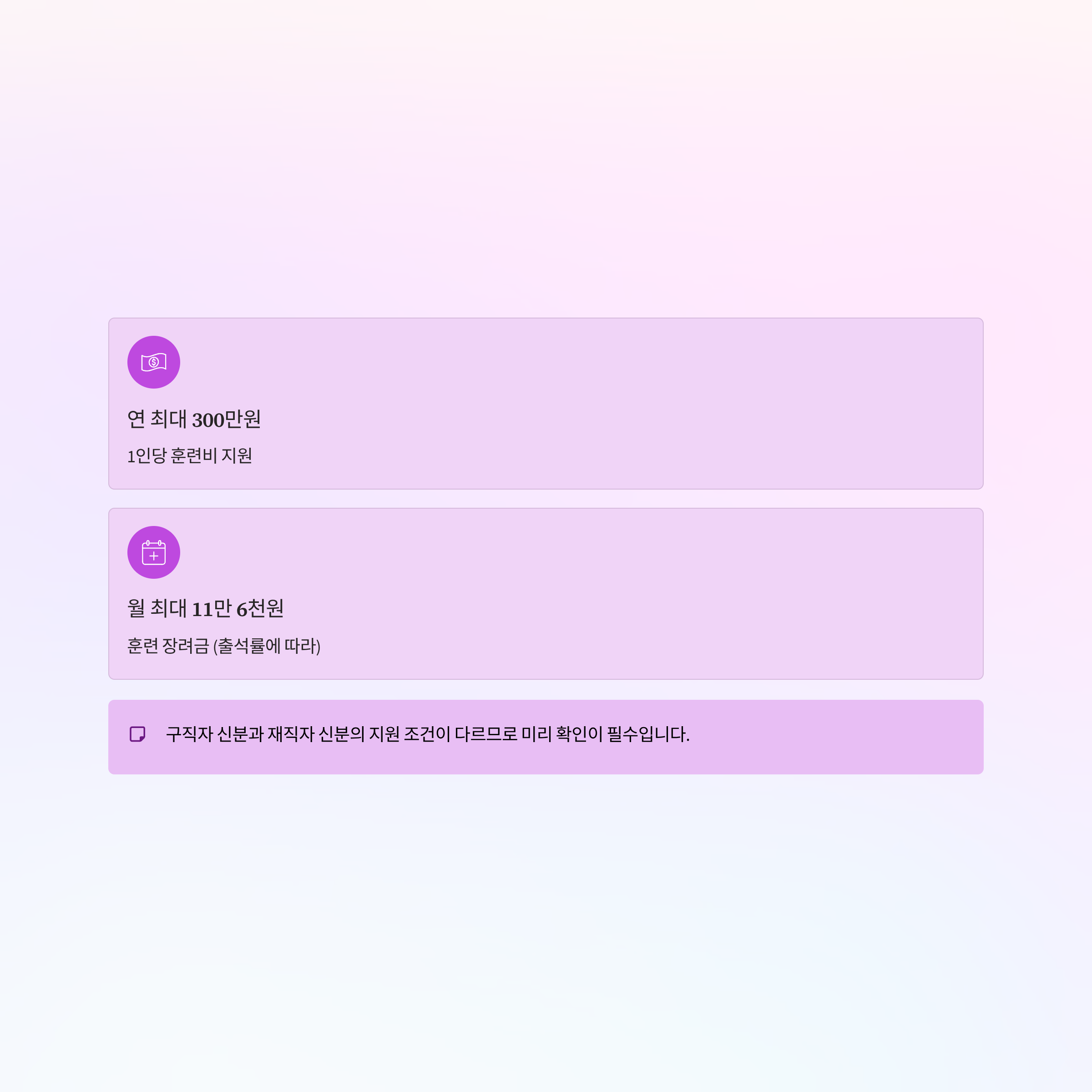 단, 구직자 신분과 재직자 신분의 지원 조건이 다르므로 미리 확인이 필수입니다.