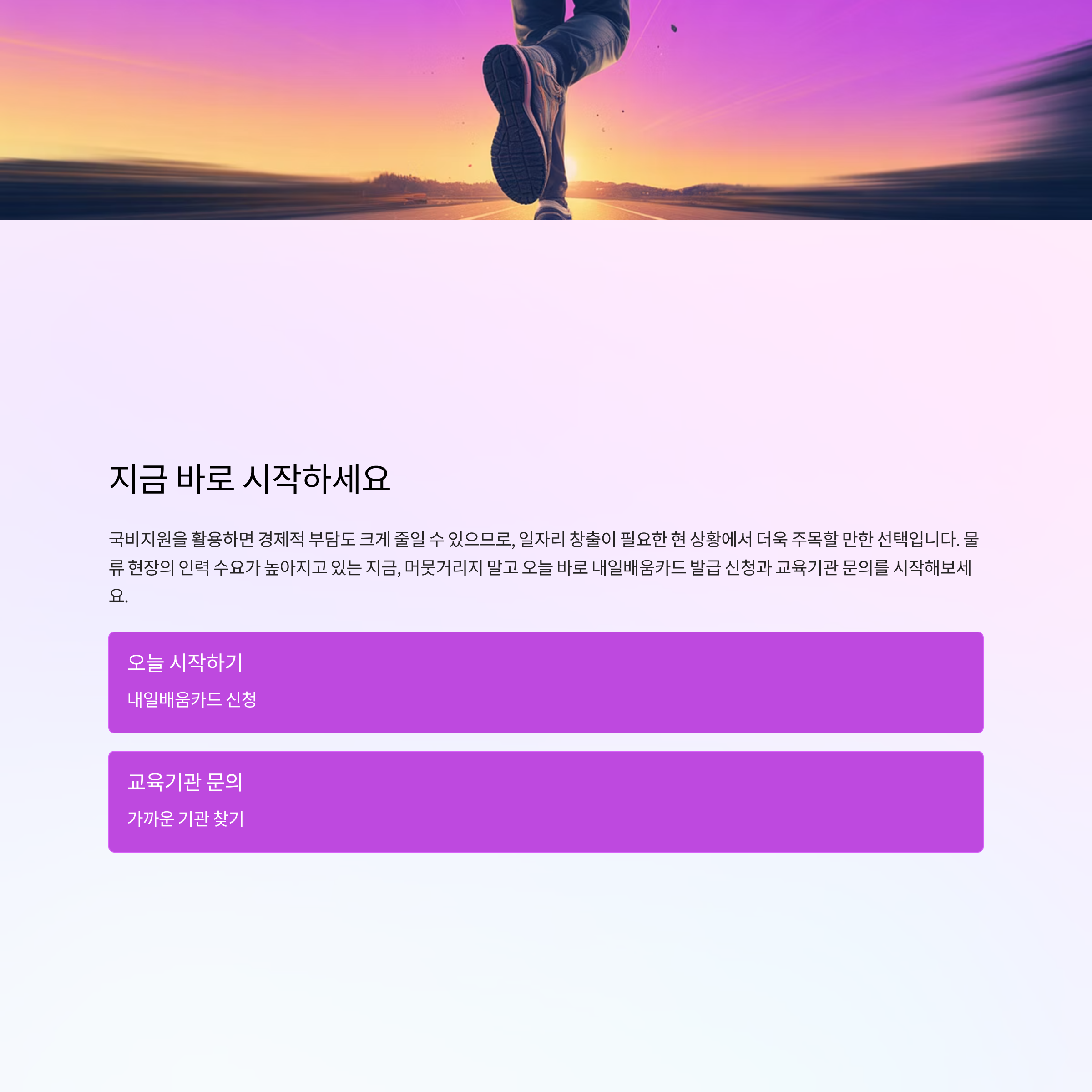 물류 현장의 인력 수요가 높아지고 있는 지금, 머뭇거리지 말고 오늘 바로 내일배움카드 발급 신청과 교육기관 문의를 시작해보세요.