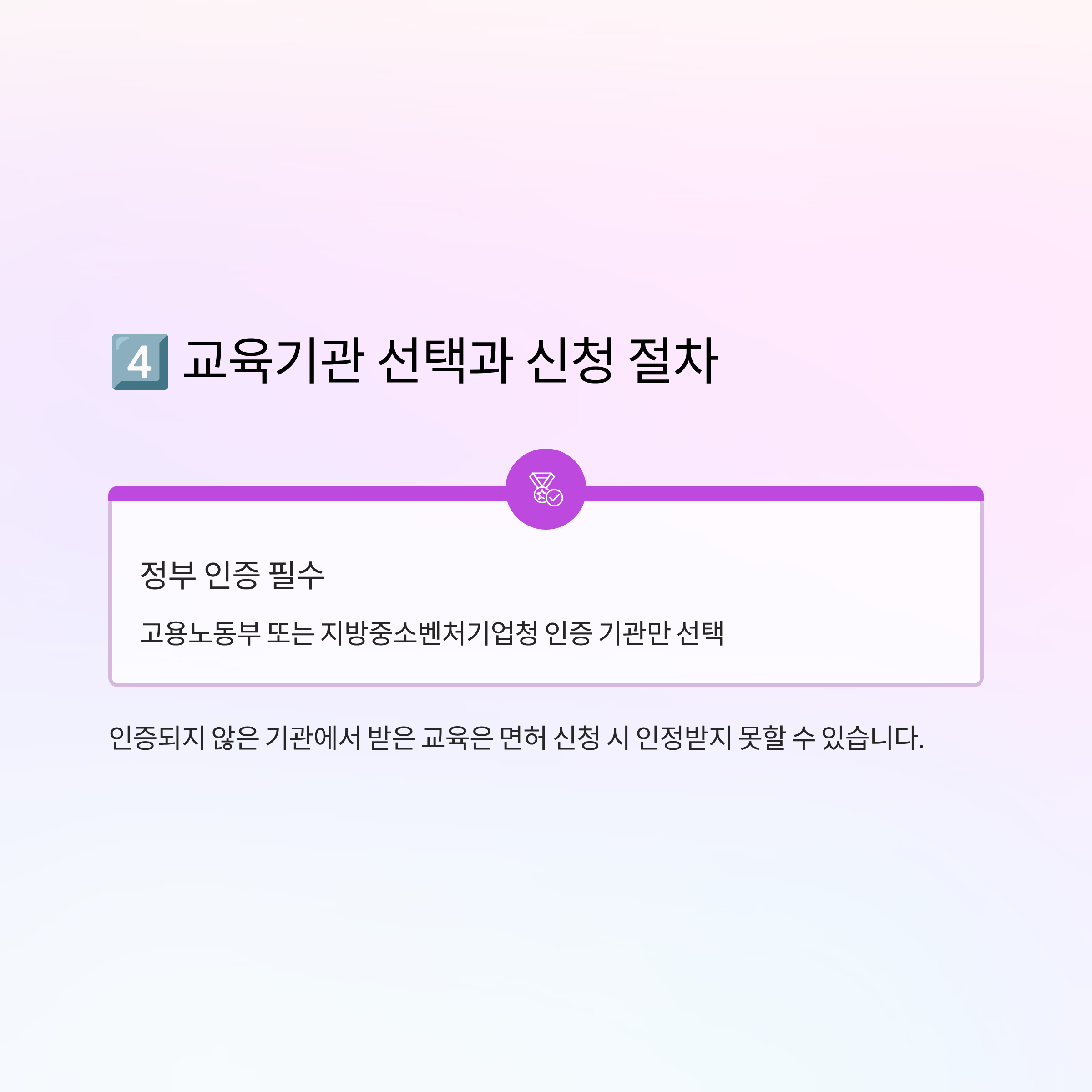 반드시 고용노동부 또는 지방중소벤처기업청이 인증한 교육기관을 선택해야 합니다.