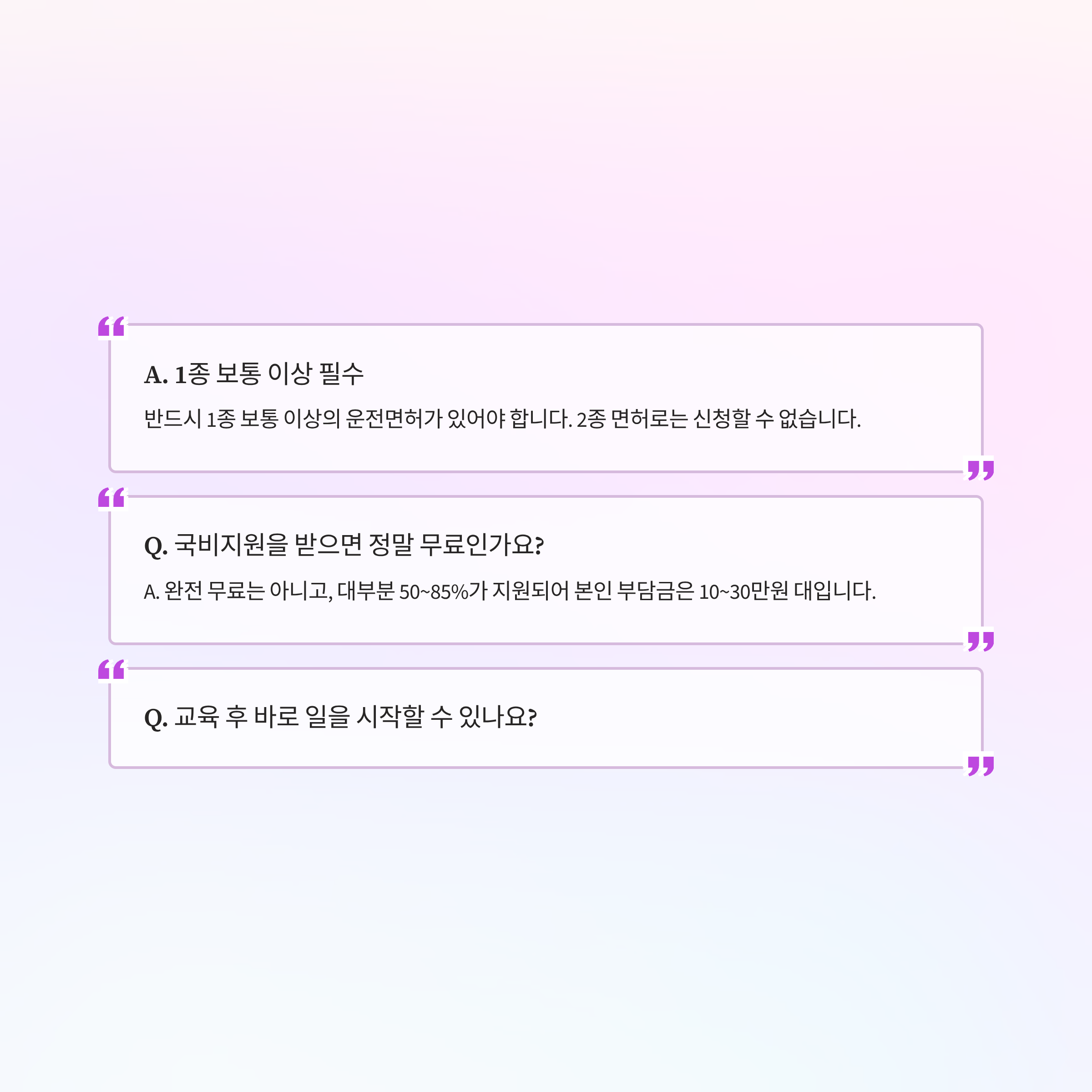 **Q. 교육 후 바로 일을 시작할 수 있나요?**