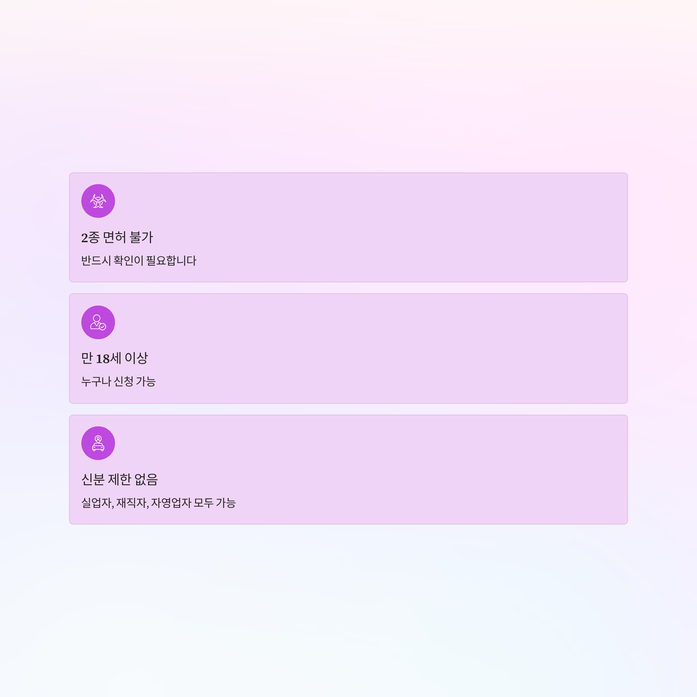 또한 2종 운전면허로는 절대 신청이 불가능하니 사전에 확인이 필수입니다.