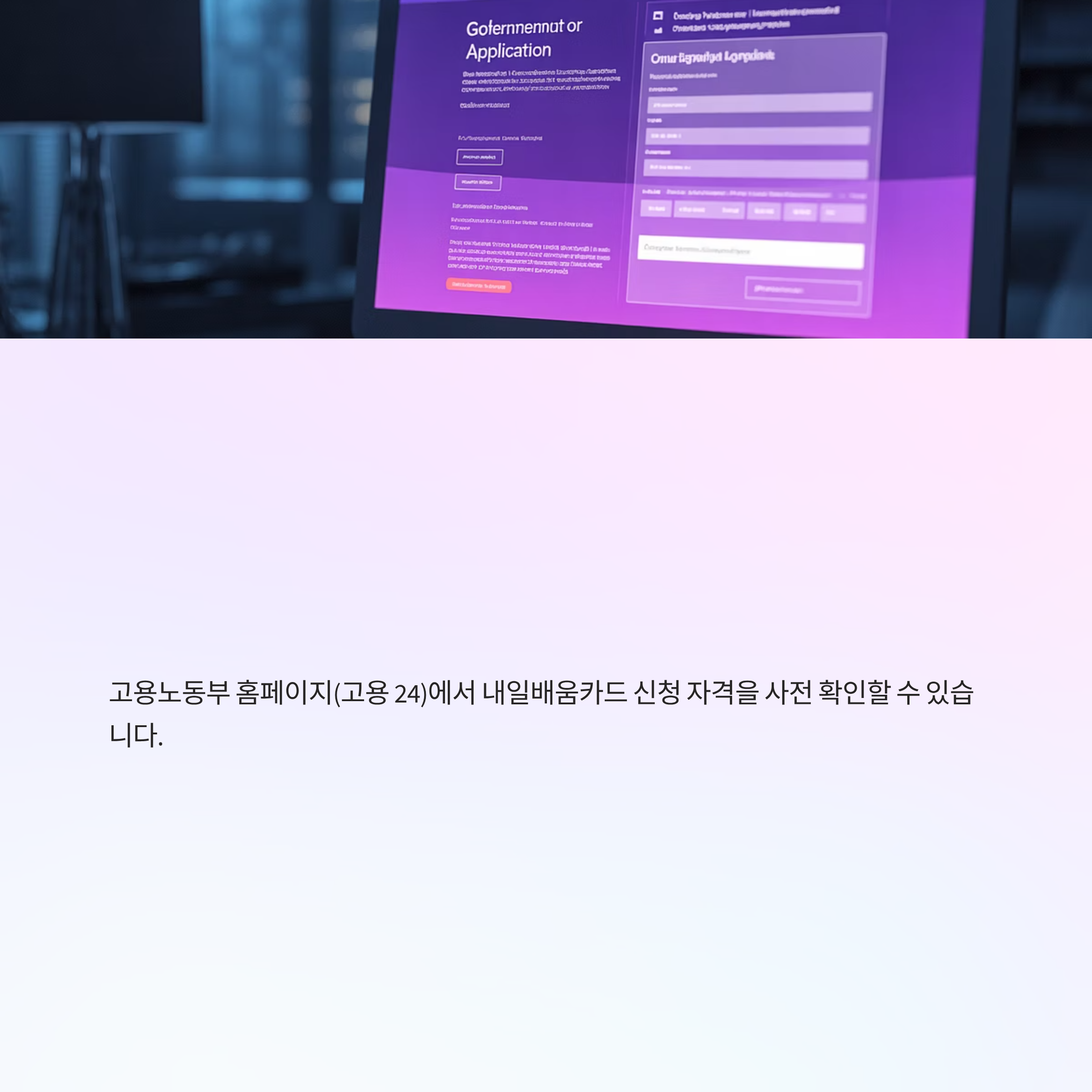 고용노동부 홈페이지(고용 24)에서 내일배움카드 신청 자격을 사전 확인할 수 있습니다.