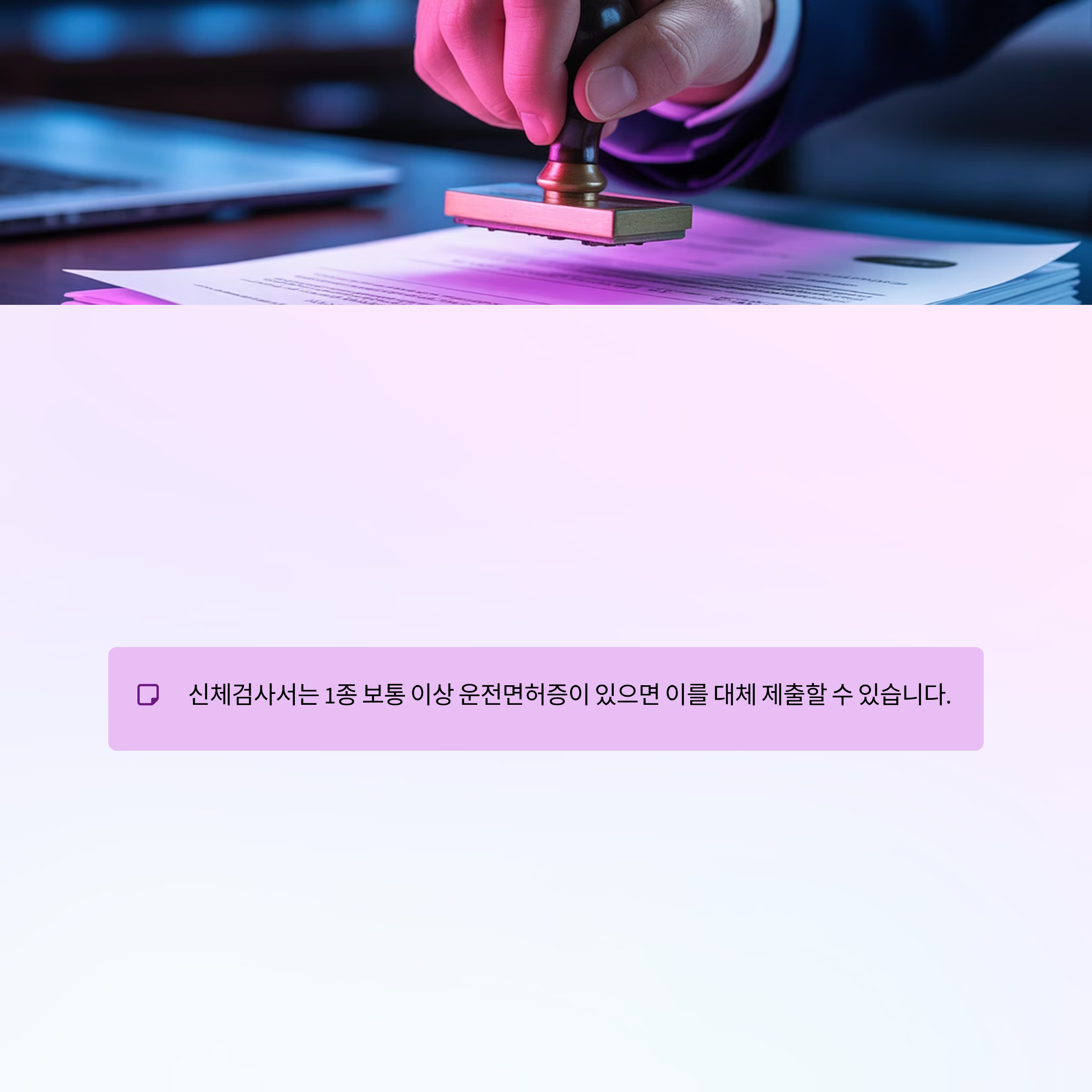 신체검사서는 1종 보통 이상 운전면허증이 있으면 이를 대체 제출할 수 있습니다.