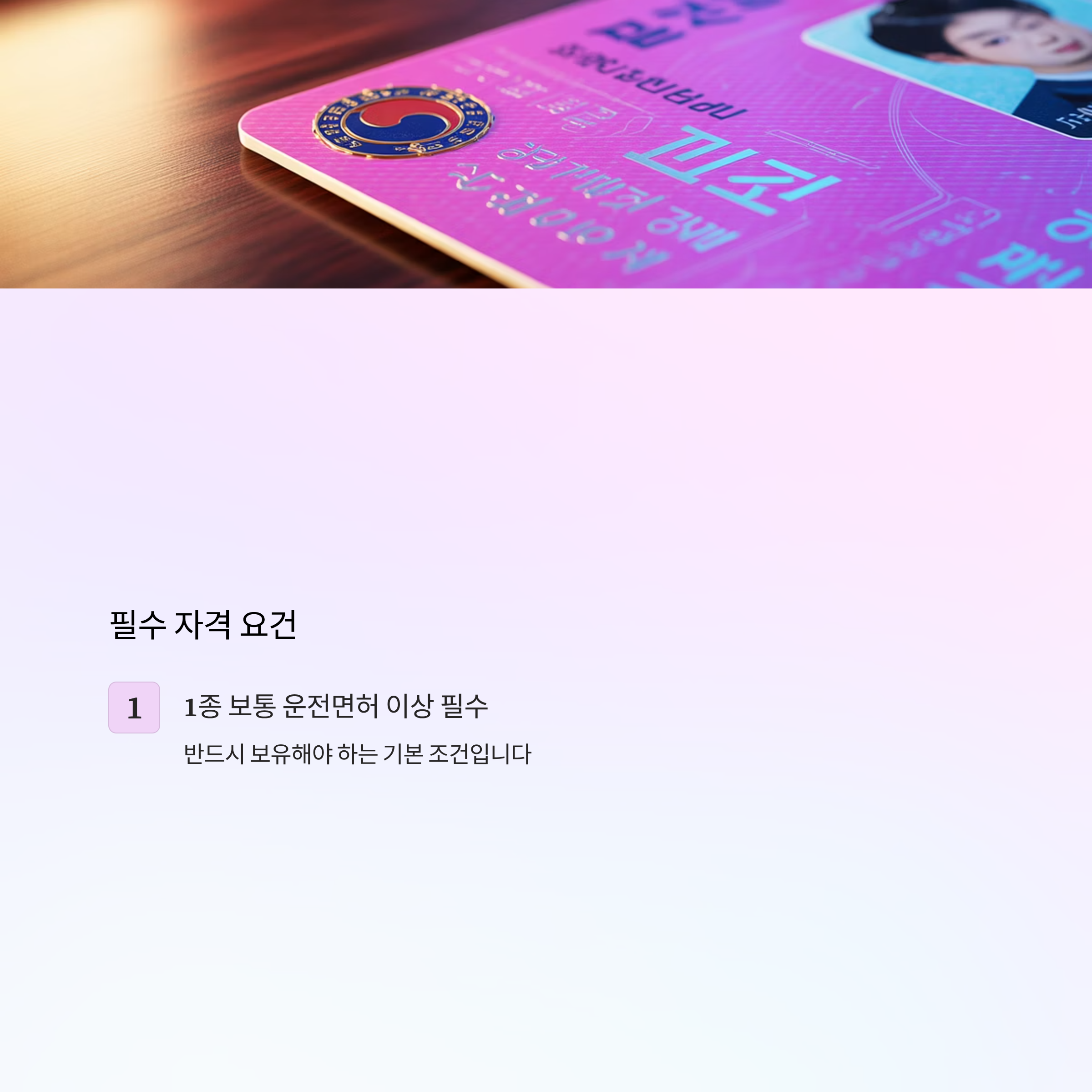 취득하기 위해서는 먼저 1종 보통 운전면허 이상을 반드시 보유해야 합니다.