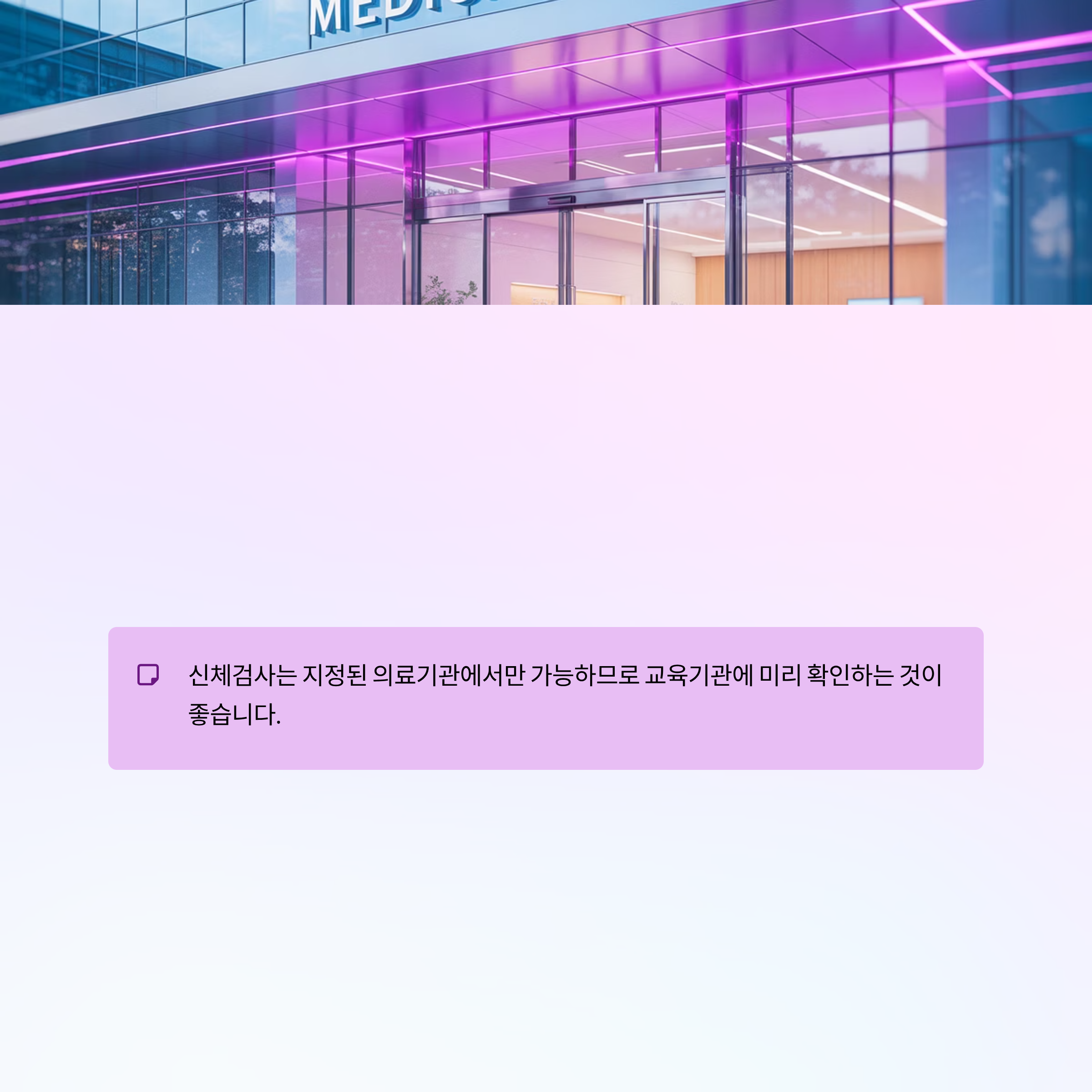 신체검사는 지정된 의료기관에서만 가능하므로 교육기관에 미리 확인하는 것이 좋습니다.