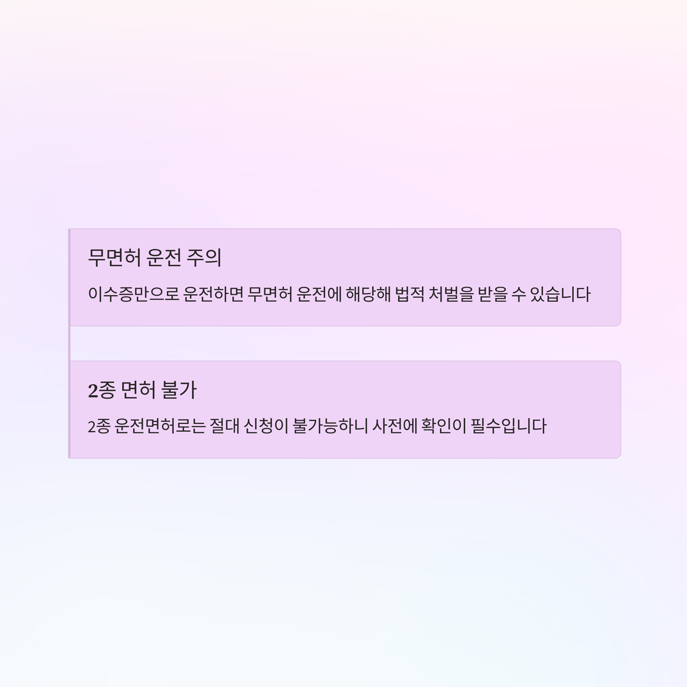 2종 면허로는 발급이 불가능하니 반드시 확인이 필요합니다.